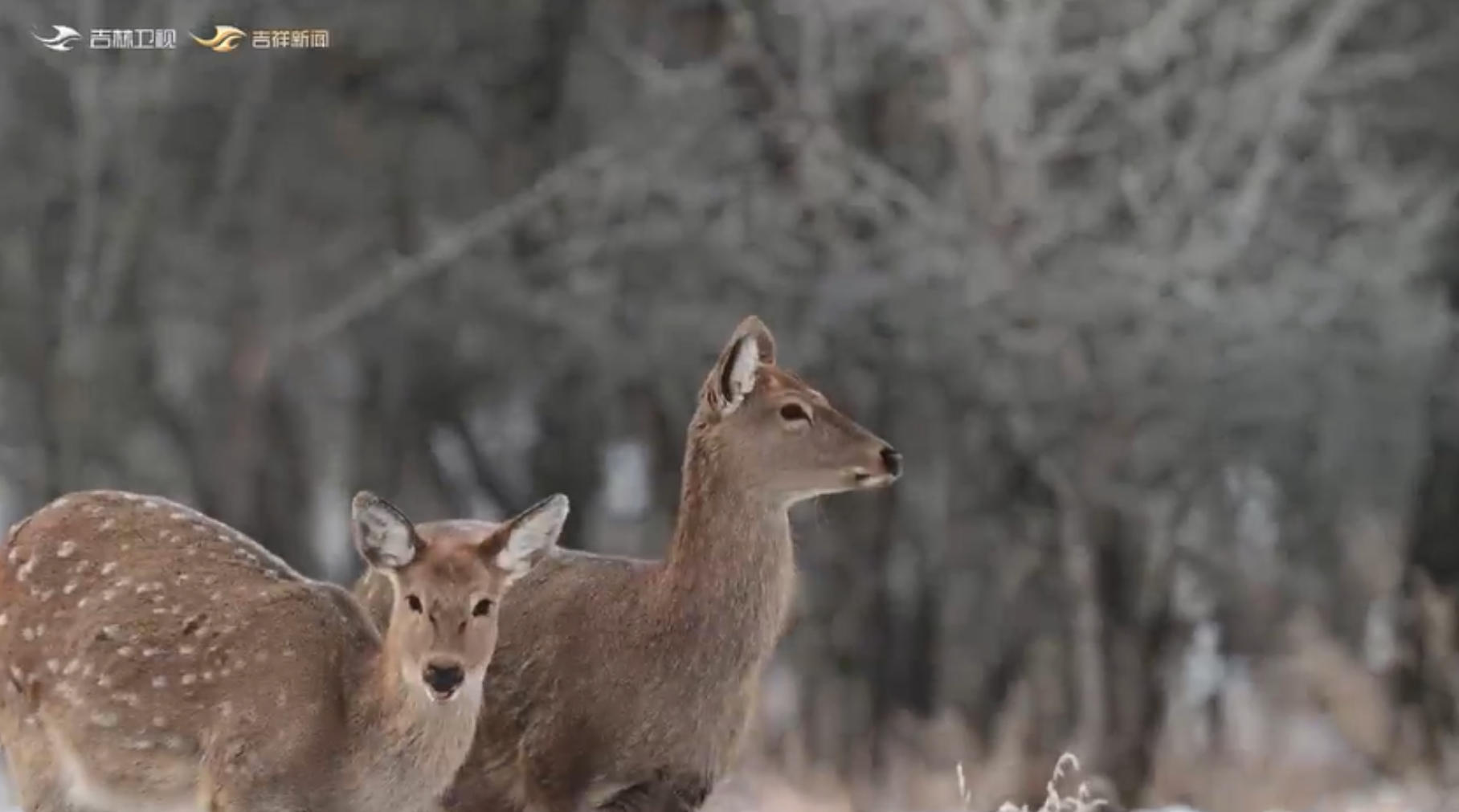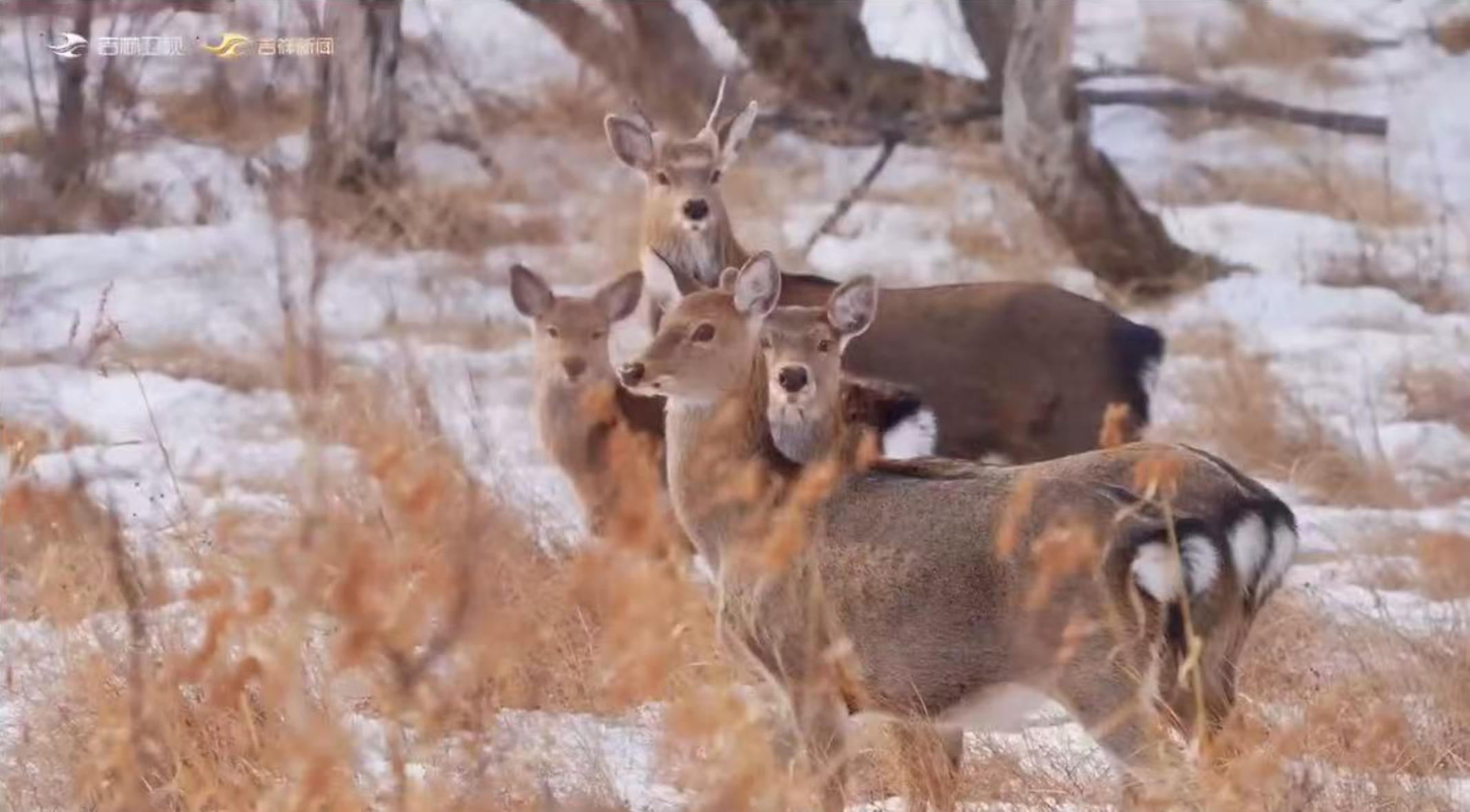 梅花鹿也步態(tài)優(yōu)雅,在雪地里輕盈漫步。