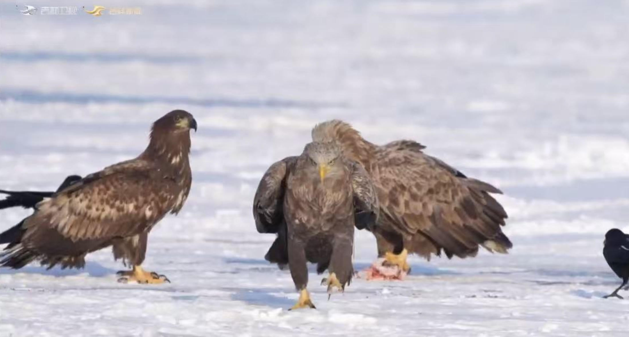 野生鳥類或低頭覓食,在雪地里留下細碎的爪印,或振翅高飛,在湛藍天空劃出靈動的弧線。