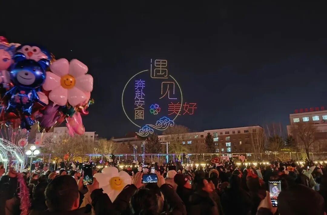 晚6時55分許,數(shù)百架無人機騰空而起,在夜空中不斷變換陣型,幻化出奔騰的駿馬圖騰以及琿春獨具特色的城市地標(biāo);音樂焰火秀盛大啟幕,璀璨的焰火與無人機燈光交相輝映,將邊城的夜空裝點得流光溢彩,現(xiàn)場觀眾的歡呼聲此起彼伏,共同唱響鑄牢中華民族共同體意識的時代強音。