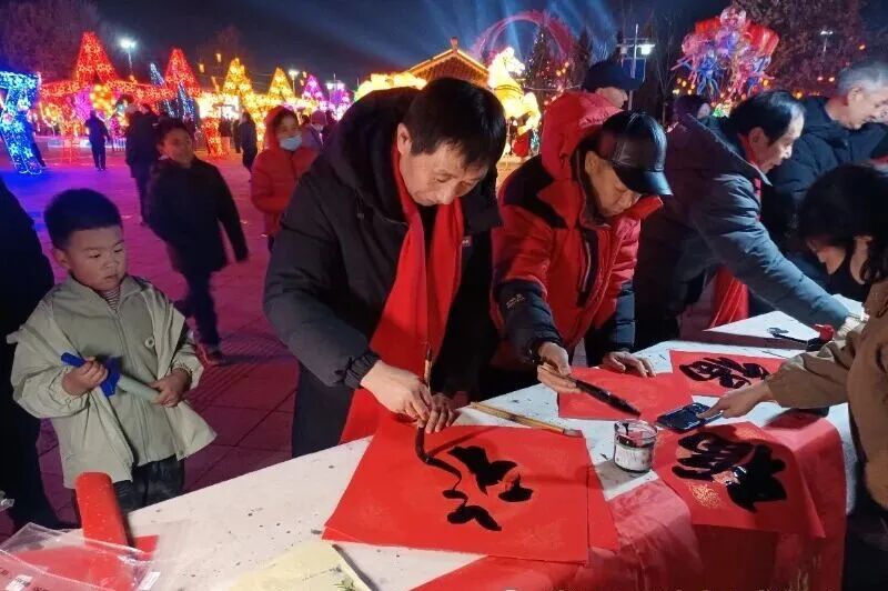 18時,“紅太陽照邊疆”游園主題燈展將廣場裝扮成光影世界,一組組寓意深遠(yuǎn)、造型精美的花燈,生動展現(xiàn)了邊疆兒女的赤子情懷與家鄉(xiāng)山河的壯美。“萬福迎春”全民書寫萬福活動現(xiàn)場墨香四溢,男女老少執(zhí)筆揮毫,一個個“?!弊殖休d著對丙午馬年的美好祈愿。移步至“馬年祥瑞·萬馬奔騰”學(xué)生手工燈展區(qū)域,孩子們精心制作的各式花燈,將童趣創(chuàng)意與生肖元素巧妙結(jié)合,引得市民紛紛駐足欣賞、拍照留念。